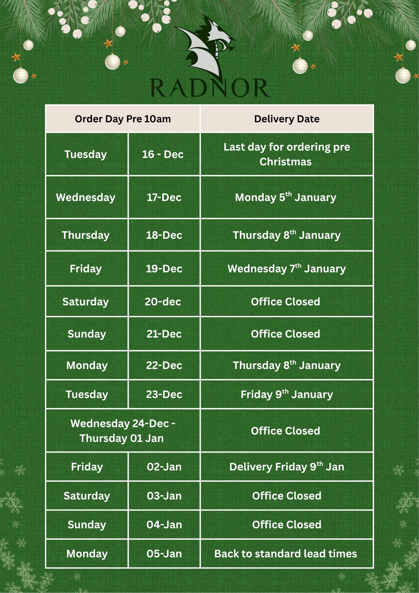 For our Christmas delivery schedule please click the button below: