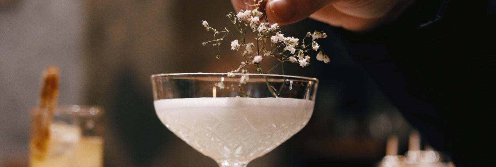 3. Pour into a martini glass and top with Heartsease farm Elderflower Presse