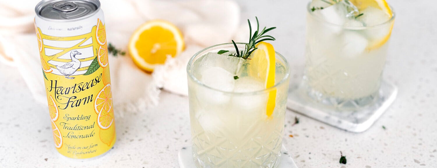 1. Add ice, gin and Heartsease Farm Lemonade to a glass.