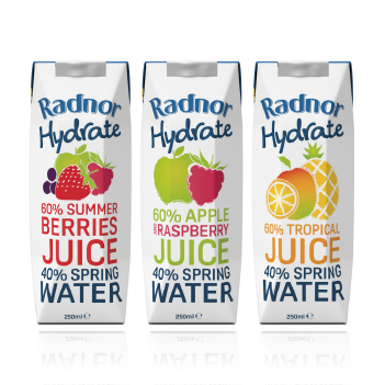 Radnor Hydrate contains 60% fruit juice and 40% natural spring water – and nothing else. There are three delicious flavours to choose from: Summer Berries, Apple & Raspberry and Tropical.